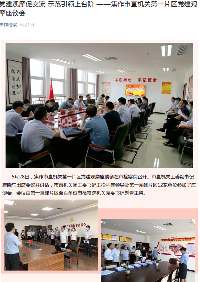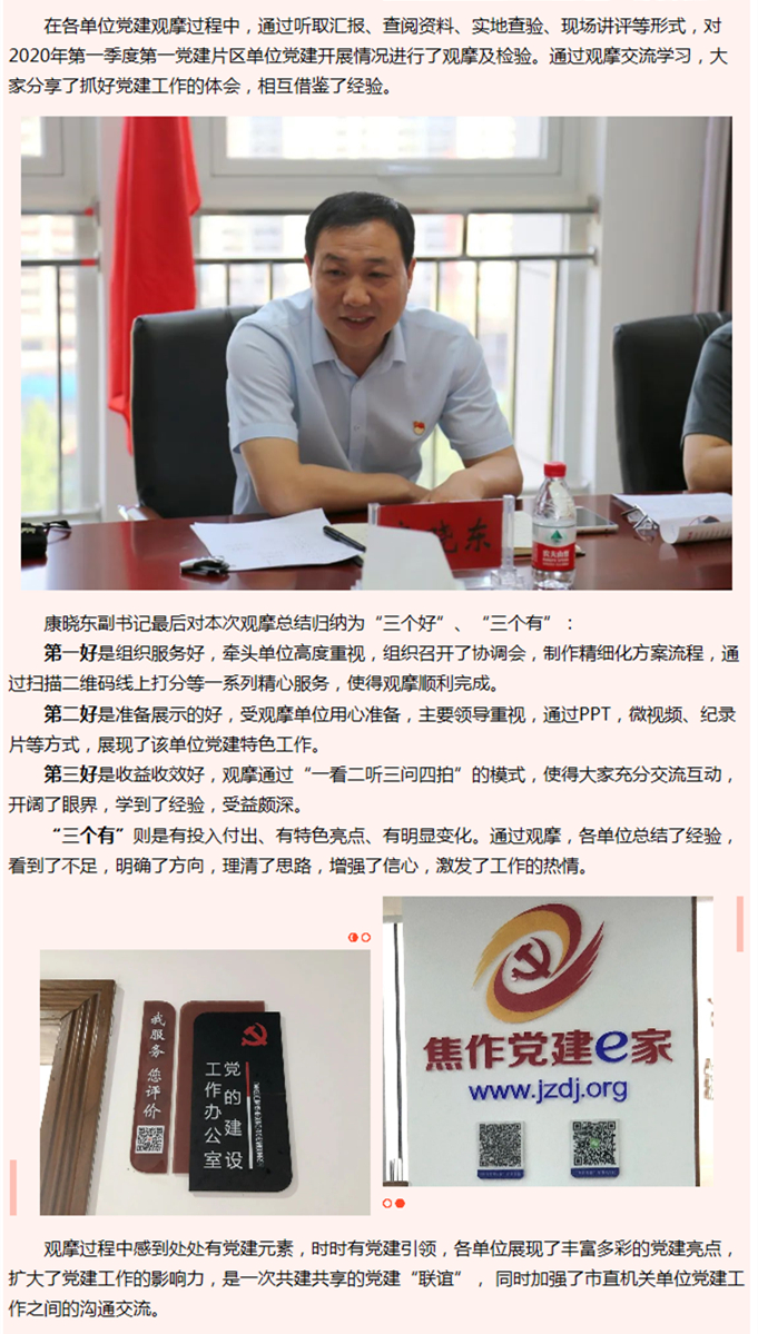 党建观摩促交流 示范引领上台阶 ——焦作市直机关第一片区党建观摩座谈会