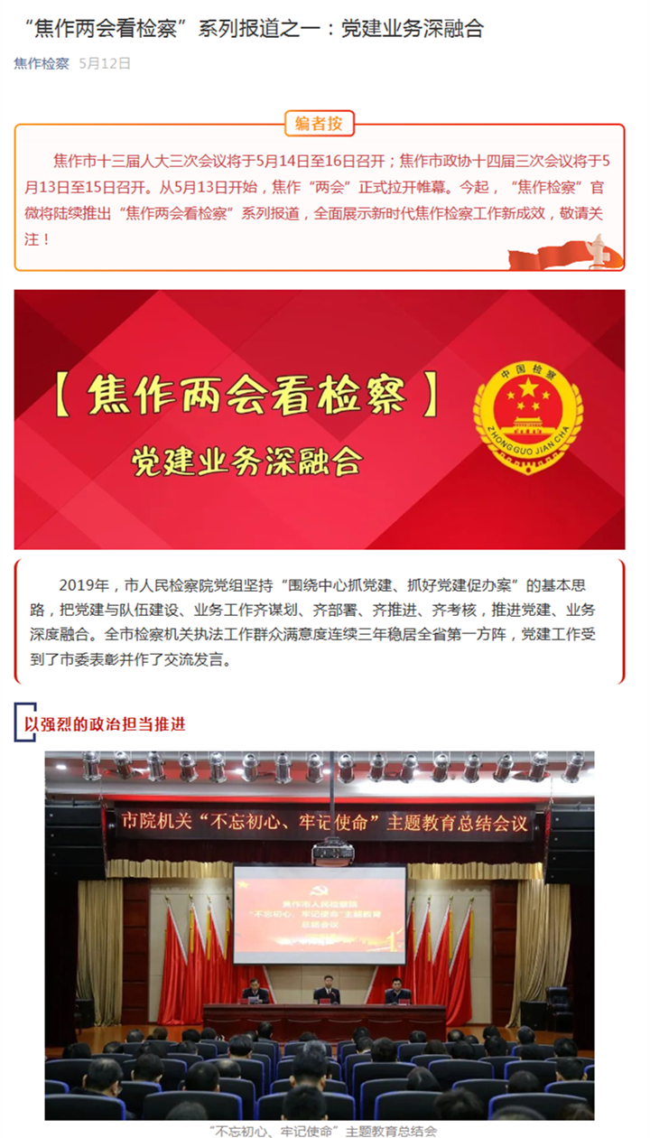 “焦作两会看检察”系列报道之一:党建业务深融合